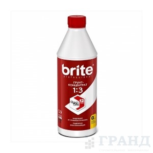 Грунт-концентрат Brite Professional 1:3 предназначен для грунтования минеральных поверхностей (кирпич, оштукатуренные поверхности, ДВП, ДСП, бетон и др.), подверженных постоянному или периодическому воздействию влаги (кухни, ванные комнаты, подвалы, фасады зданий)
