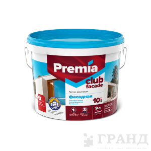 Краска PREMIA CLUB фасадная белая база А, ведро 9л